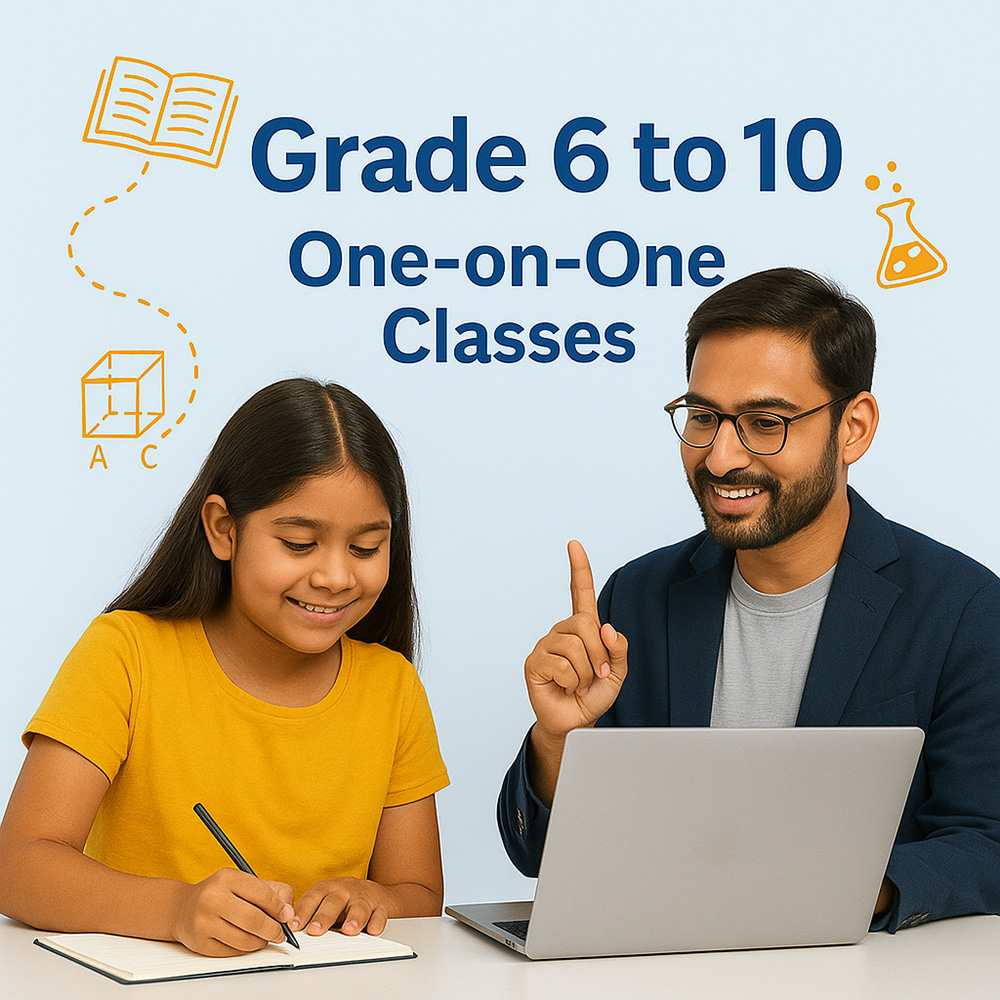 Support your child through the crucial middle and high school years with personalized one-on-one tutoring. Our Grade 6–10 program is crafted to match school curriculums and exam patterns, helping students master concepts with confidence.